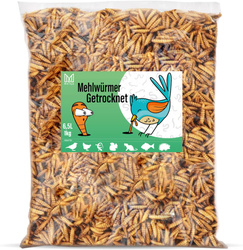 Dried mealworm larvae, food for koi, rodents, hedgehogs, birds, reptiles, fish, Mersjo 6.5l 1kg