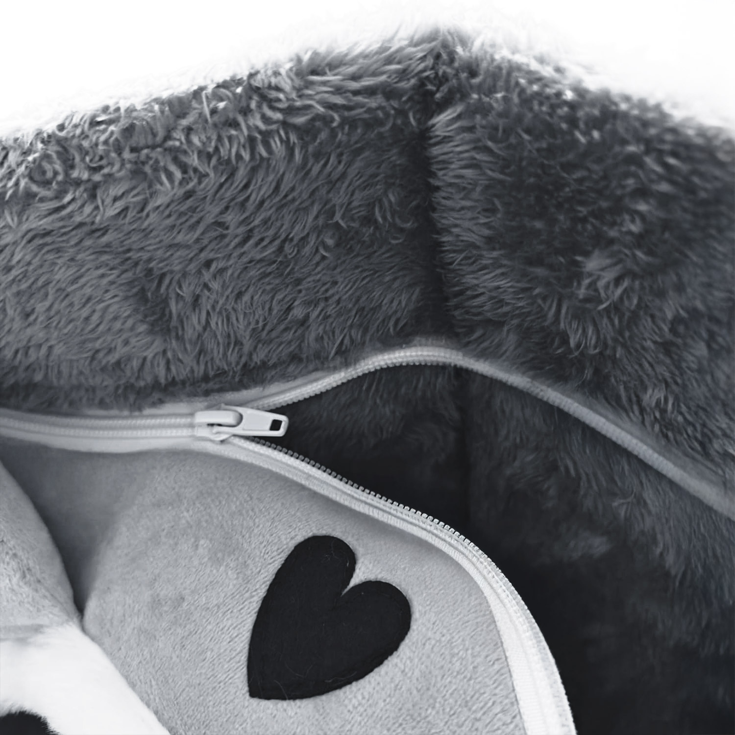 - Pluszowy i przytulny: miły w dotyku materiał sprawia, że domek jest niezwykle komfortowy dla naszego pupila