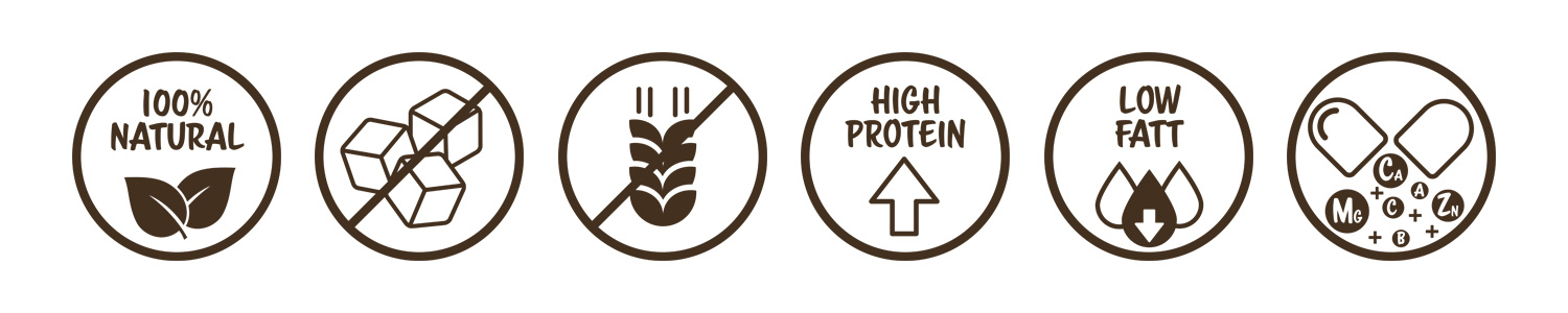 - Czysty skład – bez zbóż, glutenu, cukru i ulepszaczy