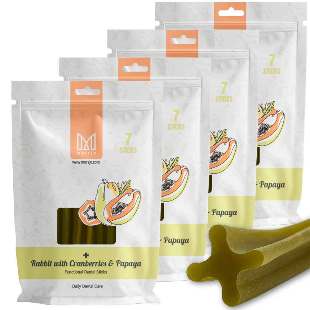 Mersjo Dental Sticks – Królik z Algami Brunatnymi, Żurawiną i Papają